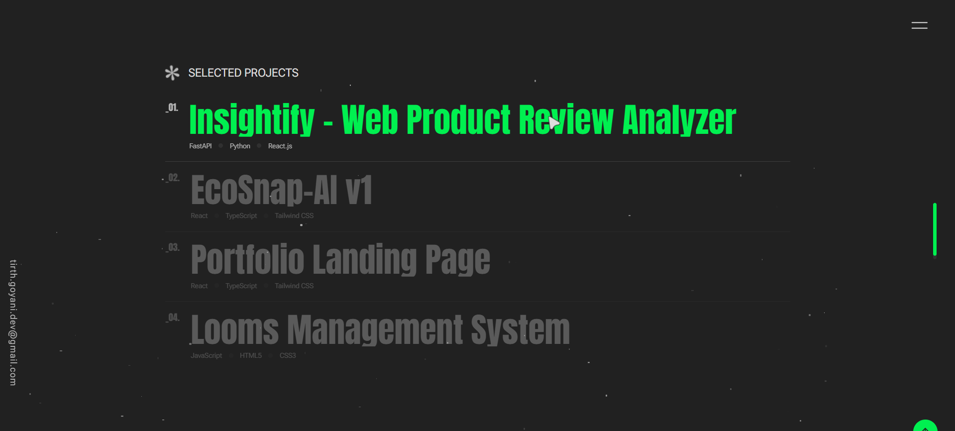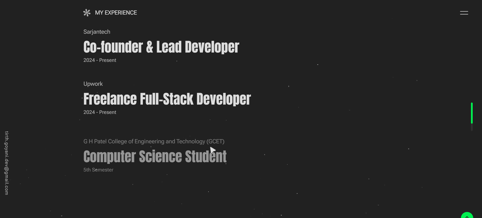 - Designed and developed a modern, responsive portfolio website